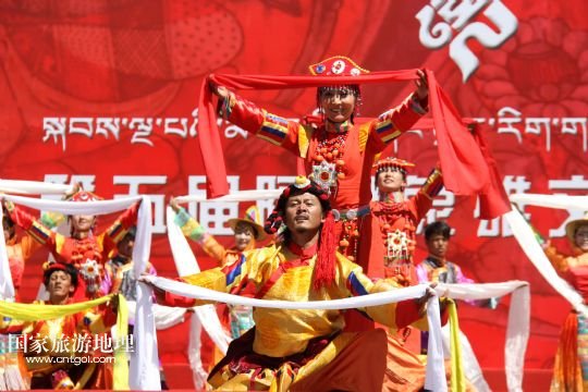 國家旅游地理 西藏阿里8月3日訊 8月3日,當(dāng)?shù)厝罕娫陂_幕式上表演富有民族特色的歌舞《美麗的阿里》。當(dāng)日,西藏阿里地區(qū)第五屆象雄文化旅游節(jié)在獅泉河文化廣場開幕。此次文化旅游節(jié)將舉辦阿里象雄文化研討會、旅游紀(jì)念品展覽、攝影展等十余項活動?! ? 新華社發(fā)(蔣先平 攝)
