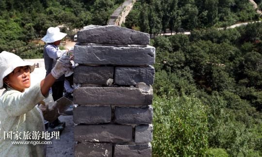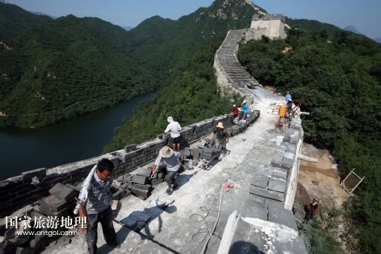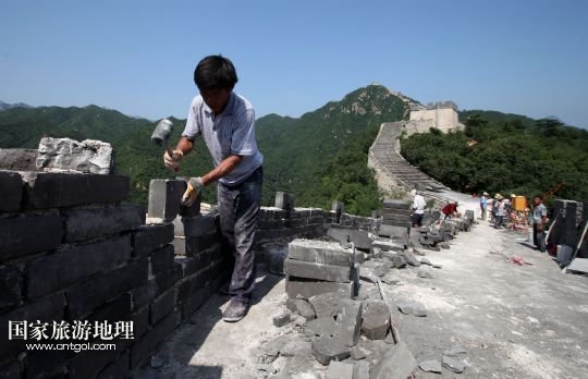 國家旅游地理 北京8月5日訊 8月4日下午,施工人員在北京懷柔西水峪古長城進(jìn)行修繕。西水峪古長城始建于明代,此次修繕部分總長960米,在嚴(yán)格保障結(jié)構(gòu)安全以及原有風(fēng)貌的前提下進(jìn)行恢復(fù)性修繕,修繕后將達(dá)到對游客開放攀登的標(biāo)準(zhǔn)。預(yù)計(jì)修繕工程將于今年10月底完成,屆時(shí)經(jīng)過專業(yè)部門驗(yàn)收后有望對外開放。 /新華社發(fā)(卜向東 攝)