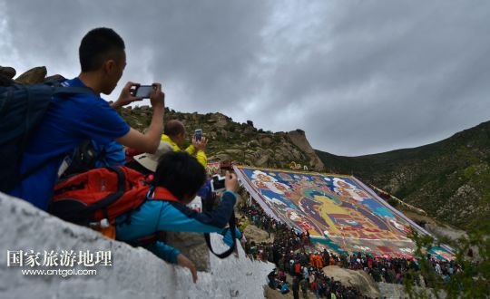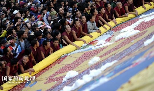 國家旅游地理 西藏拉薩8月6日訊 8月6日,拉薩哲蚌寺舉行展佛儀式。當(dāng)日,以西藏最大的格魯派寺廟哲蚌寺展佛為開端的雪頓節(jié)在拉薩拉開序幕。每年藏歷六月底七月初是西藏傳統(tǒng)的節(jié)日“雪頓節(jié)”。在藏語中,“雪”是酸奶子的意思,“頓”是“吃”“宴”的意思,“雪頓節(jié)”按藏語解釋就是吃酸奶子的節(jié)日,因此又叫“酸奶節(jié)”。因?yàn)?ldquo;雪頓節(jié)”期間有隆重?zé)崃业牟貞蜓莩龊鸵?guī)模盛大的曬佛儀式,所以有人也稱之為“藏戲節(jié)”“曬佛節(jié)”。 /新華社記者 普布扎西攝