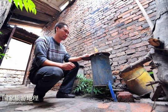 國家旅游地理 寧夏石嘴山9月6日訊 在寧夏回族自治區(qū)石嘴山市大武口區(qū)人民街道工人街社區(qū)的原洗煤廠老舊小區(qū)內(nèi),46歲的馬連生在院子里生火準(zhǔn)備燒開水。他在這里已經(jīng)居住了14年(9月3日攝)。