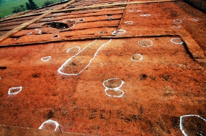 荷花山遺址已發(fā)現(xiàn)有裝飾性很強的陶片,這是不是中國最早的彩陶?而從分布密集的柱洞看,早期的衢州人會不會住在半穴式房屋內(nèi)呢?在荷花山遺址的西區(qū),發(fā)現(xiàn)有大量的石器、塊石混合遺跡,這是不是“石器制造場”?而從已發(fā)現(xiàn)有“田”字紋飾等陶片來看,這會不會祖先已有原始文字、宗教的意識?