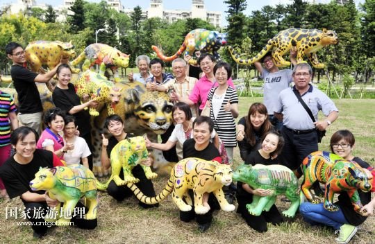 國家旅游地理 臺灣臺北9月18日訊 9月17日,人們在臺北市青年公園的云豹彩繪活動上合影。當(dāng)日,臺北市青年公園舉行“記憶與重生——臺北市青年公園公共藝術(shù)計劃”活動,讓市民們彩繪出自己心中已經(jīng)滅絕的臺灣云豹的模樣,以此呼吁環(huán)保。 /新華社發(fā)(吳景騰 攝)
