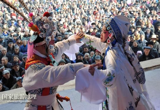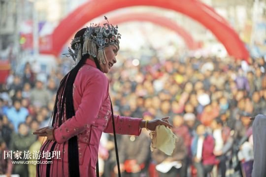 國(guó)家旅游地理 1月2日訊 2014年1月2日,在安徽省亳州市譙城區(qū)十河鎮(zhèn),演員在表演亳州非遺劇種“二夾弦”。當(dāng)日,安徽省亳州市譙城區(qū)2014年“三下鄉(xiāng)”活動(dòng)啟動(dòng),當(dāng)?shù)蒯t(yī)療、文化、科技部門的“三下鄉(xiāng)”服務(wù)隊(duì)到基層開展文化、衛(wèi)生、科技、法律下鄉(xiāng)活動(dòng),為基層群眾送上新年的問候。 /新華社發(fā)(張延林 攝)