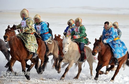 摘要:2014年“銀色西烏珠穆沁”杰仁馬文化節(jié)在內(nèi)蒙古錫林郭勒盟西烏珠穆沁旗舉行。當(dāng)?shù)孛晒抛迥撩裆碇A麗的服飾,帶著自家的馬匹,冒著風(fēng)雪嚴寒,從四面八方趕到會場,參加了賽馬、套馬、乘馬拾物、蒙古馬選美等多項比賽,吸引了來自全國各地的游客、攝影愛好者以
