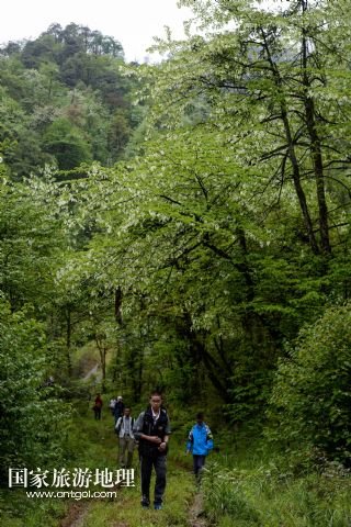 國(guó)家旅游地理 四川雅安5月4日訊 5月3日,游客從龍蒼溝國(guó)家森林公園珙桐林的鴿子花旁經(jīng)過(guò)。目前,在位于四川省大相嶺山脈東麓北坡的龍蒼溝國(guó)家森林公園里,近8萬(wàn)畝的鴿子花盛開。鴿子花是珙桐之花。珙桐是我國(guó)特有的珍稀植物,瀕臨滅絕,是國(guó)家一級(jí)保護(hù)植物,也是著名的觀賞植物。珙桐花朵盛開時(shí)猶如鴿群展翅欲飛,而被稱為鴿子花。 /新華社記者 江宏景 攝