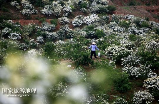 國家旅游地理 江西九江5月24日訊 5月24日,游客在黃梔子種植基地采摘梔子花。小滿時(shí)節(jié),在位于鄱陽湖畔的江西省九江市都昌縣土塘鎮(zhèn)潭湖村的坡嶺上,春輝黃梔子專業(yè)合作社6個(gè)種植基地的兩千多畝黃梔子全面進(jìn)入盛花期,種植園內(nèi)芳香四溢。黃梔子是傳統(tǒng)中藥材,花朵可觀賞、食用,果實(shí)可用于醫(yī)藥、染色、化妝品等領(lǐng)域。成立于2007年的都昌春輝黃梔子農(nóng)民專業(yè)合作社近年來致力于實(shí)施科技推廣、標(biāo)準(zhǔn)化種植和專業(yè)化經(jīng)營黃梔子,將黃梔子從“飄香”經(jīng)濟(jì)延伸到“染色”“藥用”深加工,進(jìn)軍省內(nèi)外市場。 /新華社發(fā)(傅建斌 攝)